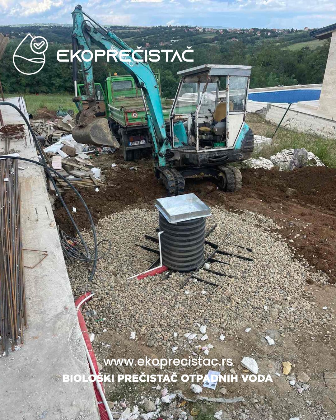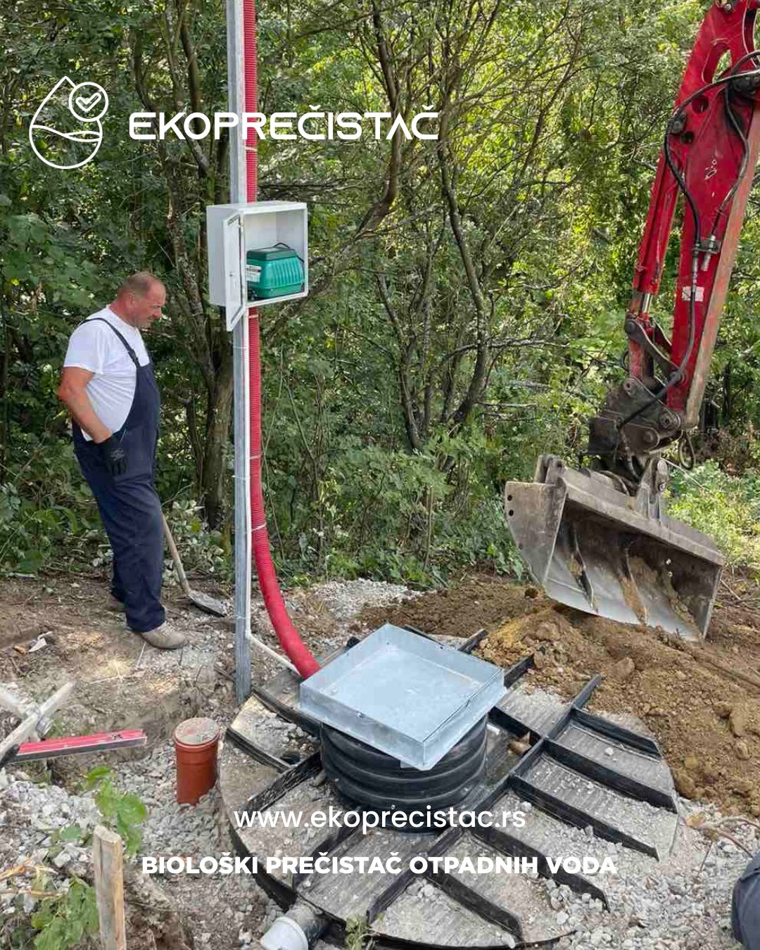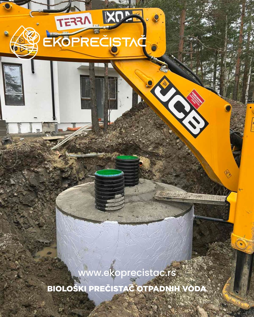 Izradu, ugradnju i puštanje u rad vrši naše kvalifikovano i iskusno osoblje. Samu jamu potrebno je na terenu pozicionirati na način da je dostupna cisterni za pražnjenje. Preporučujemo da se upojni bunar i biološki prečistač ugrade u isti iskop.