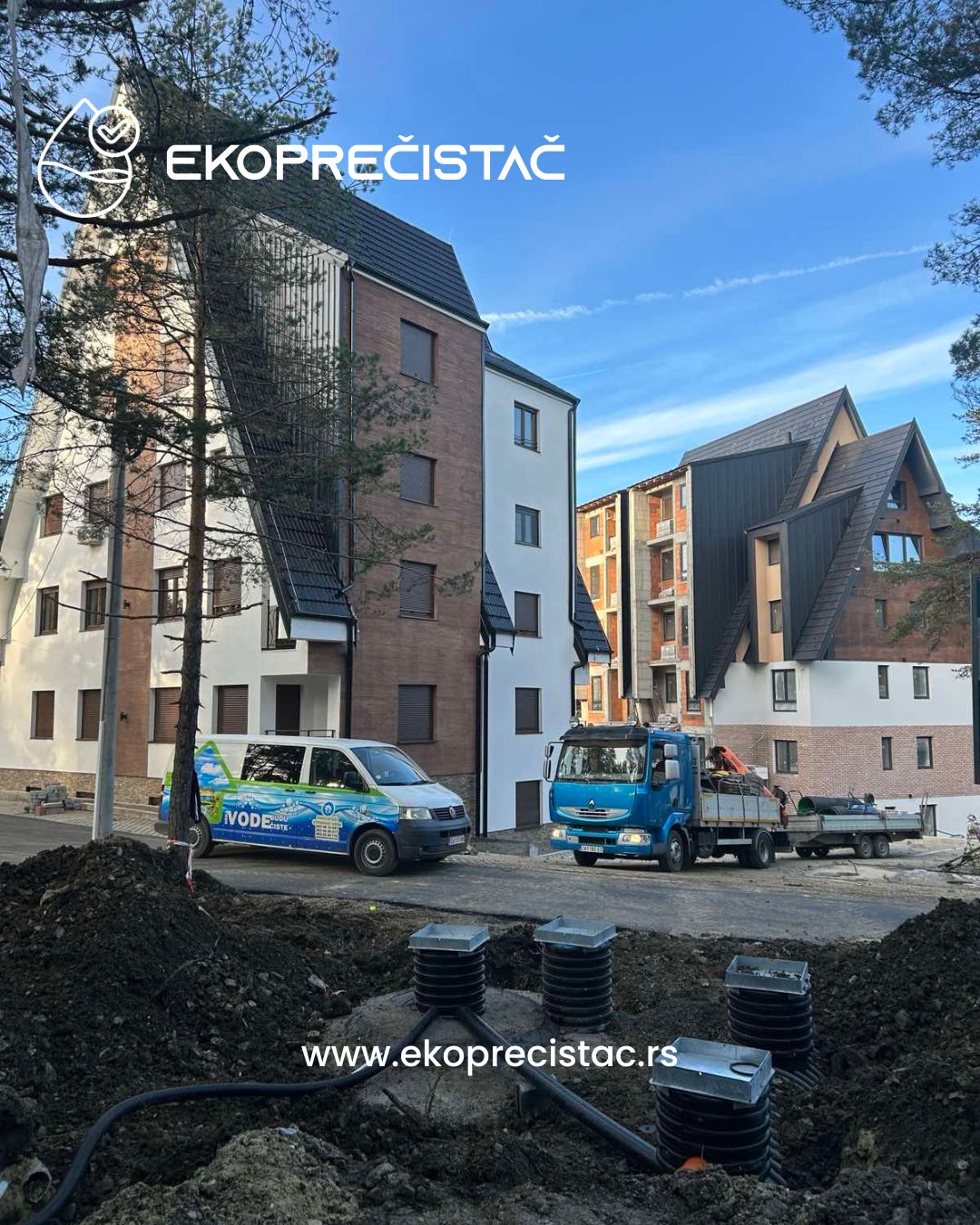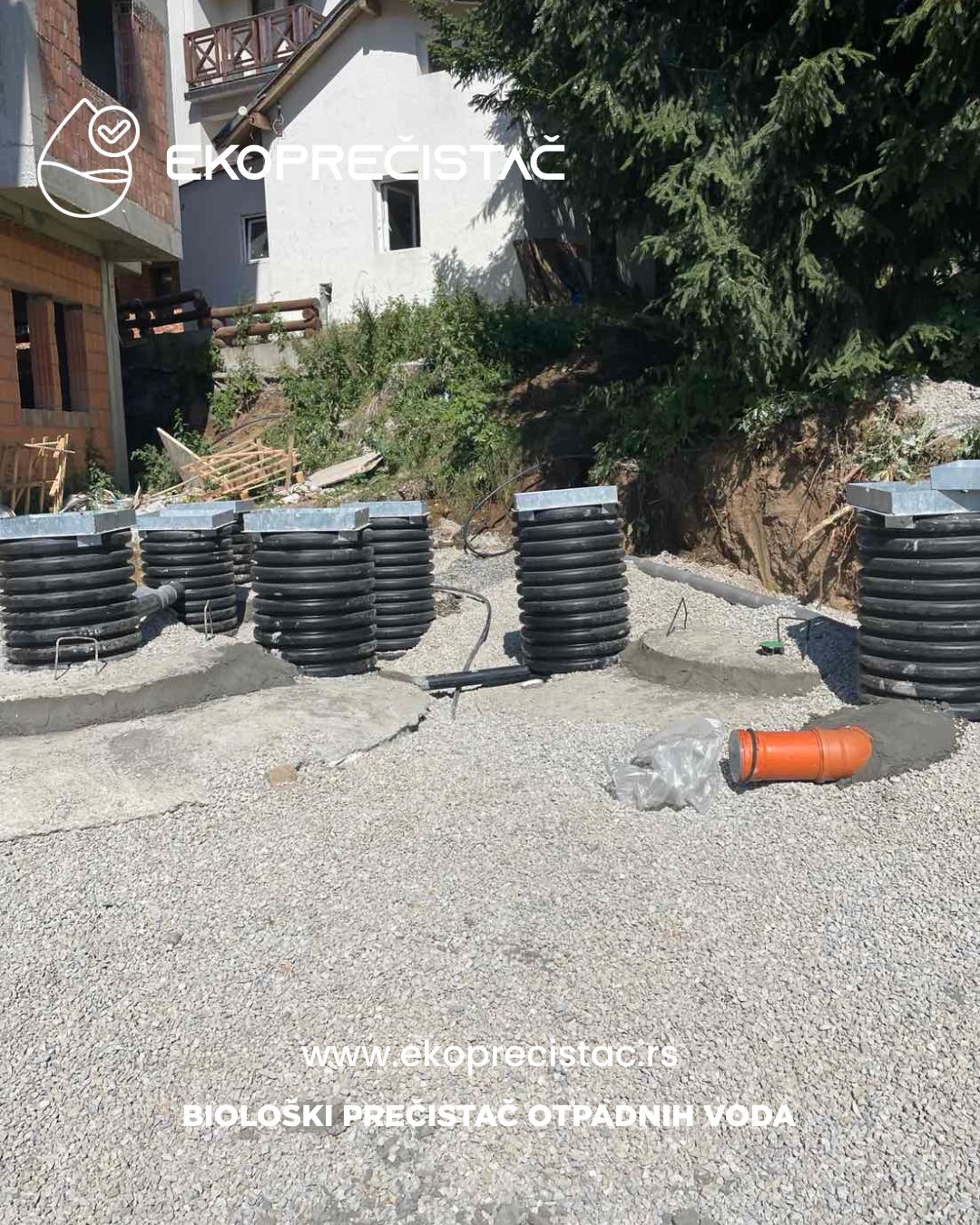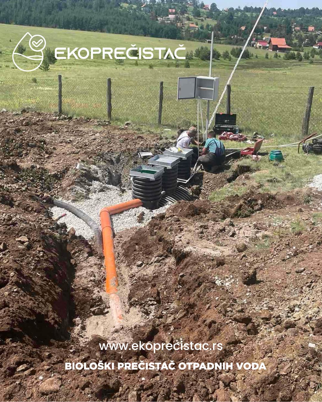 Izradu, ugradnju i puštanje u rad vrši naše kvalifikovano i iskusno osoblje. Samu jamu potrebno je na terenu pozicionirati na način da je dostupna cisterni za pražnjenje. Preporučujemo da se upojni bunar i biološki prečistač ugrade u isti iskop.